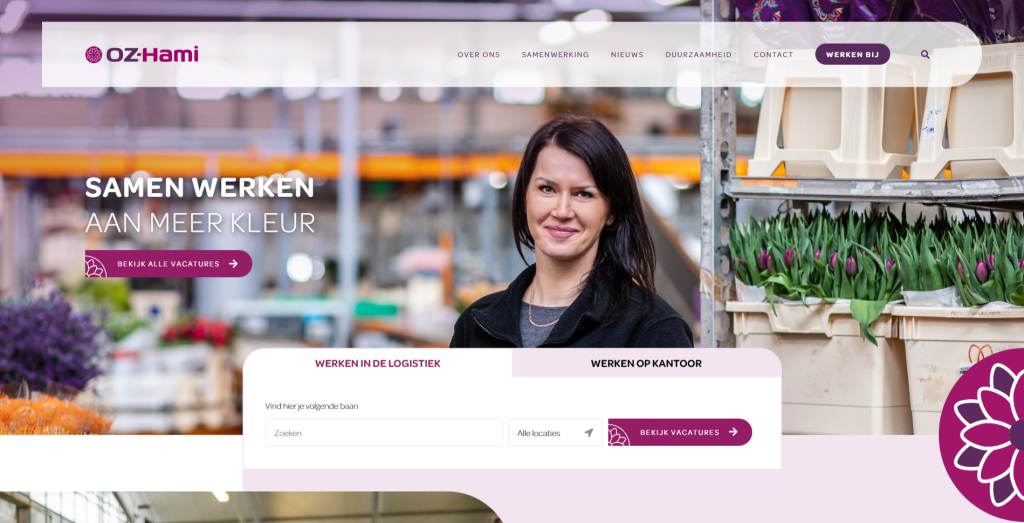 Vacatures overal steeds opnieuw moeten invoeren, daar zit je als HR-medewerker niet op te wachten. Gelukkig is dat nu verleden tijd. Voor OZ-Hami, grootleverancier van sierbloemen, bouwden wij een website waarop je vacatures niet meer handmatig hoeft in te voeren. Dankzij een slimme koppeling met het HR-systeem Emply worden de openstaande vacatures die daarin staan, rechtstreeks overgenomen op de site. Dat bespaart tijd! En die koppeling kunnen we uiteraard ook maken met andere HR-systemen. Wel zo makkelijk! Aansluitend maakten we de vacaturebank van OZ-Hami eenvoudig te doorzoeken met een handige zoekfunctie en filters.