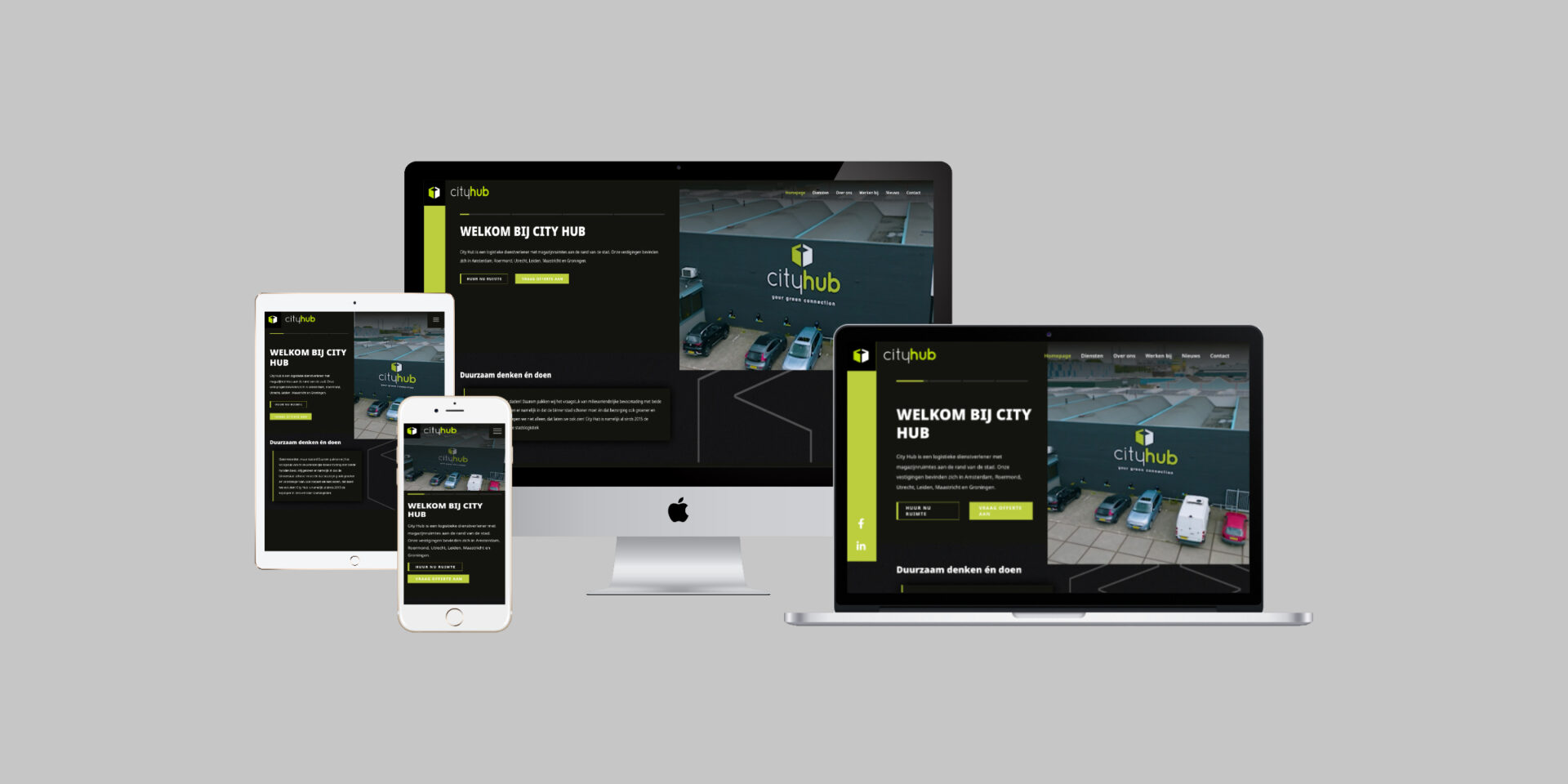 Omdat er steeds meer online wordt besteld, lopen stadscentra vaker en sneller vol met halfvolle bestelbusjes, die allemaal op tijd de bestelde producten willen bezorgen. Dit zorgt niet alleen voor verkeersopstoppingen en een hoop irritatie, maar ook voor ontzettend veel onnodige luchtverontreiniging. Daarom heeft CityHub handige distributiecentra aan de rand van steden, waar alle verschillende bestellingen worden verzameld en met slechts één groen transportmiddel het centrum in worden gereden en bezorgd. Wij ondersteunen CityHub met on- en offline marketing.